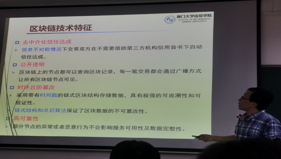 讲座上,刘昆宏教授从为什么要关注区块链、什么是区块链、区块链与比特币是什么关系引出区块链的优势以及当前数字货币存在的问题。随后,他对区块链技术特征、部署形式及区块链演变历程进行了阐述,并指出区块链的出现让信息互联网变成了价值互联网。最后,他对区块链+相关领域的应用进行了案例分析并对区块链技术趋势做了全面展望。