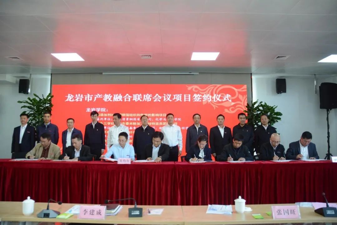 会议上,市教育局和龙岩学院、闽西职业技术学院、龙岩技师学院分别作相关工作情况汇报,并举行“龙岩市产教融合联盟”、“龙岩市职业技能提升中心”和“闽西职业技术学院产教融合协同创新中心”授牌仪式。