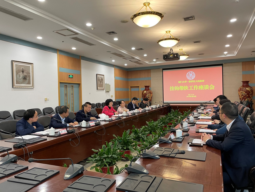 1月28日下午,龙岩新罗区人民政府副区长、新罗区对口支援领导小组副组长兼联络组组长陈锦华一行来校对接挂钩帮扶工作,就厦门大学—新罗区人民政府挂钩帮扶工作与我校座谈交流。厦门大学党委常委、副校长邓朝晖出席。