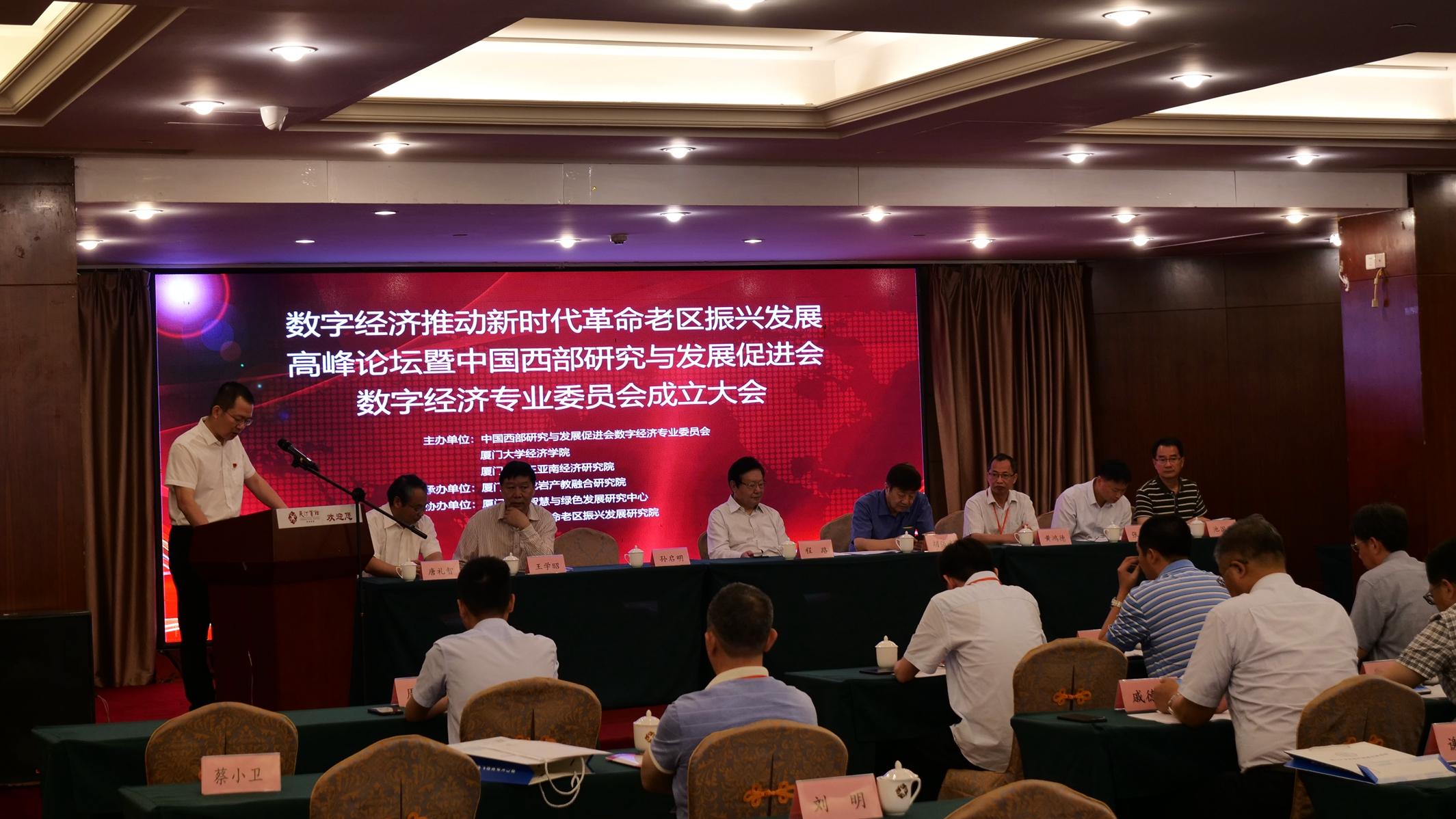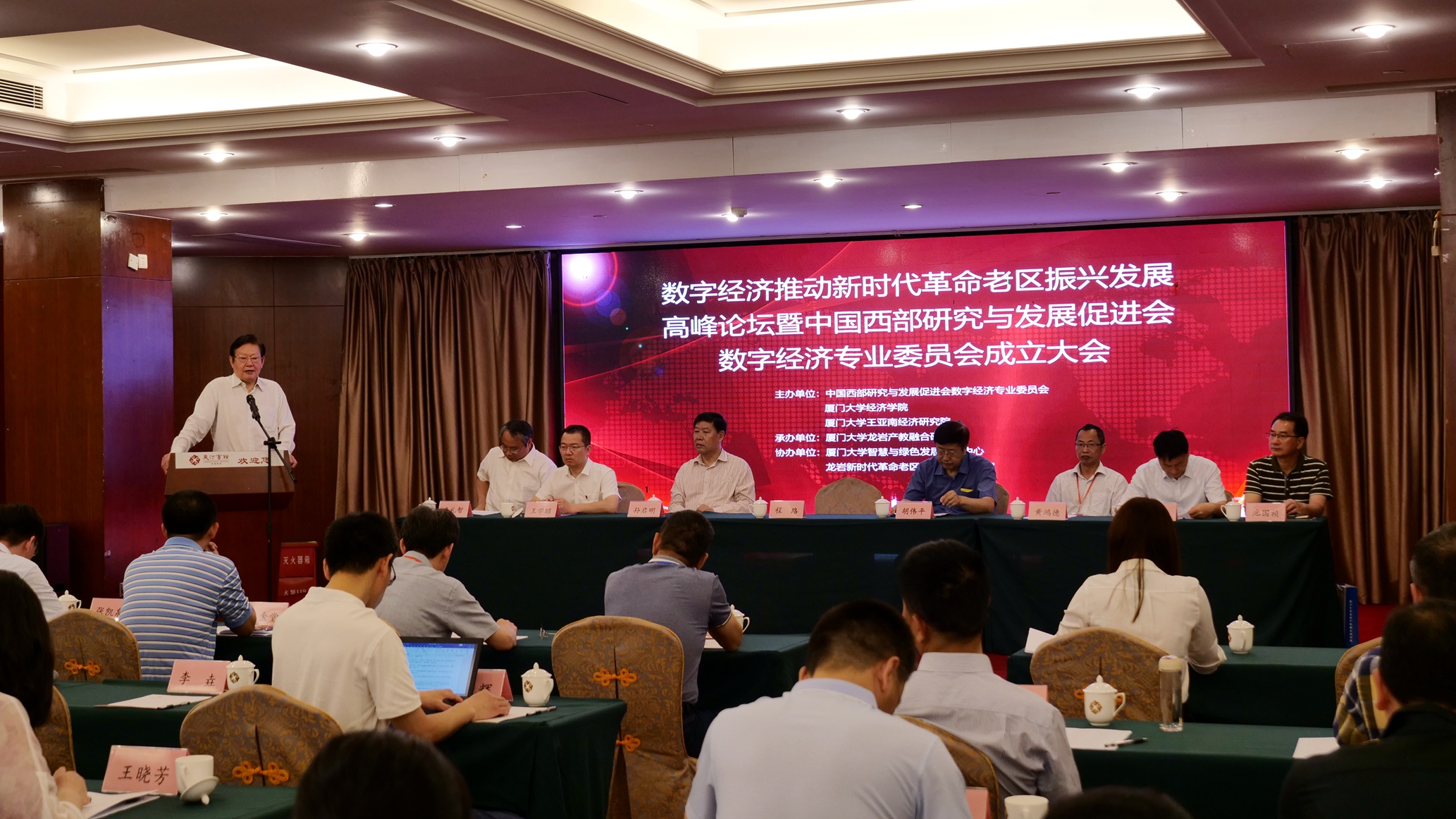2021年5月29日,由中国西部研究与发展促进会数字经济专业委员会、厦门大学经济学院和厦门大学王亚南经济研究院联合主办,厦门大学龙岩产教融合研究院承办,厦门大学智慧与绿色发展研究中心和龙岩新时代革命老区振兴发展研究院联合协办的“数字经济推动新时代革命老区振兴发展高峰论坛暨中国西部研究与发展促进会数字经济专业委员会成立大会”在福建省长汀县成功举办。第九届全国工商联副主席、中国西部研究与发展促进会理事长程路、中国西部研究与发展促进会常务副会长胡伟平、中国西部研究与发展促进会副会长兼数字经济专业委员会主任孙启明、厦门大学经济学院党委书记黄鸿德、龙岩市大数据和政务服务管理局副局长张发盛、龙岩市科技局四级调研员池国祯、长汀县副县长王学昭以及来自国内11所高校和研究机构的数字经济专家40余人参加了本次大会。会议由厦门大学龙岩产教融合研究院院长、厦门大学经济学院教授唐礼智主持。