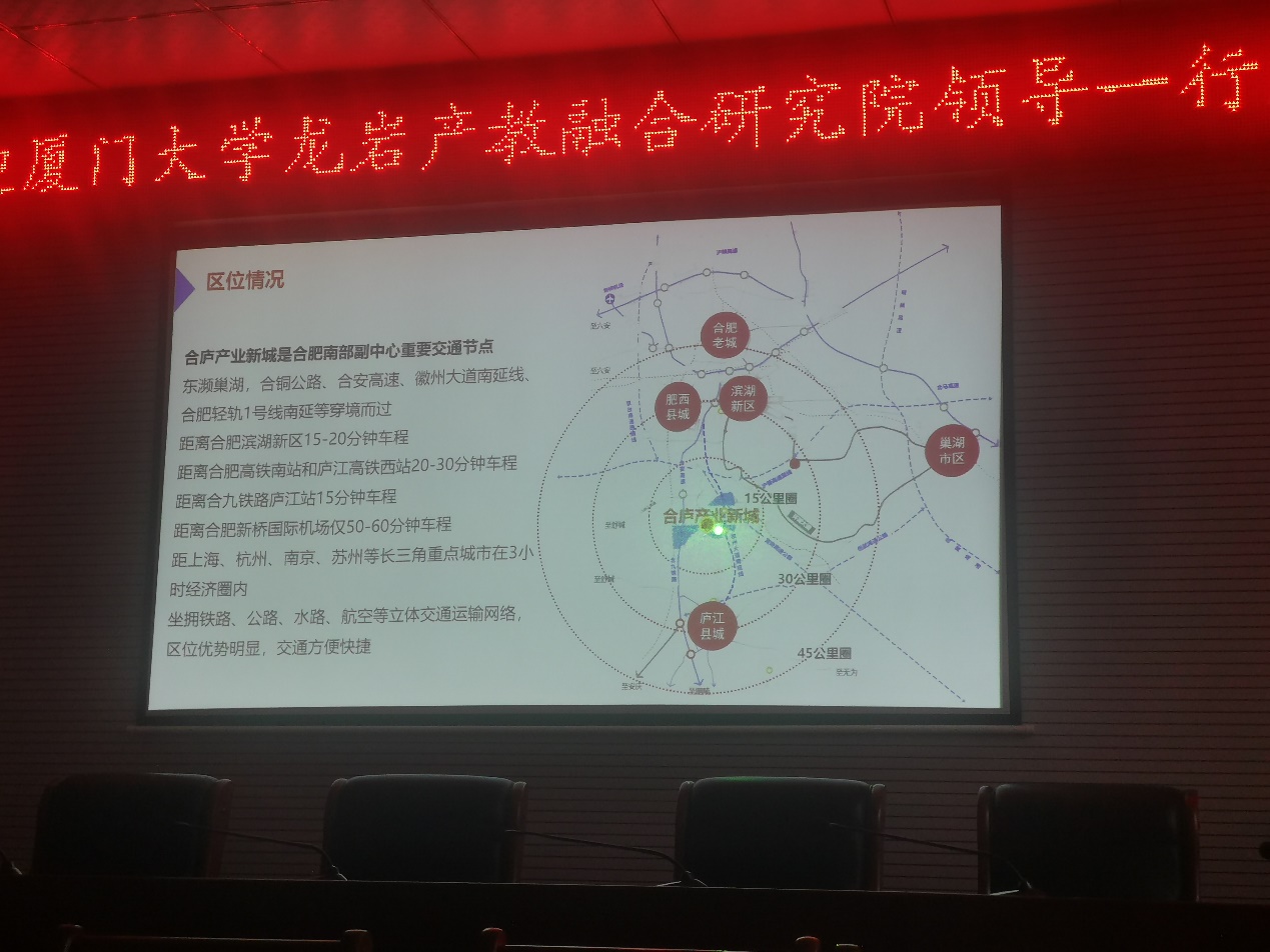 8日下午,应庐江县人民政府之邀,唐礼智一行又马不停蹄赶往庐江县合庐产业新城,并在管委会会议室与周天斌县长以及管委会、文旅局、经信局、乡村振兴局、数据资源局、发改委、资源规划局等各政府部门负责人开展座谈,详细了解庐江县如何承接合肥中心城区科研成果转化和加大产学研合作的成功经验,特别是庐江县积极通过推动安徽大学未来学院、安徽农业大学新校区文教项目落地,筹备大学科技园;主动融入合肥滨湖科学城并充分发挥最大外溢效应,全方位推动城市公共服务设施、基础设施布局衔接等一系列切实可行的举措,快速启动合庐产业新城建设与招商引资,让我们留下了深刻的印象。