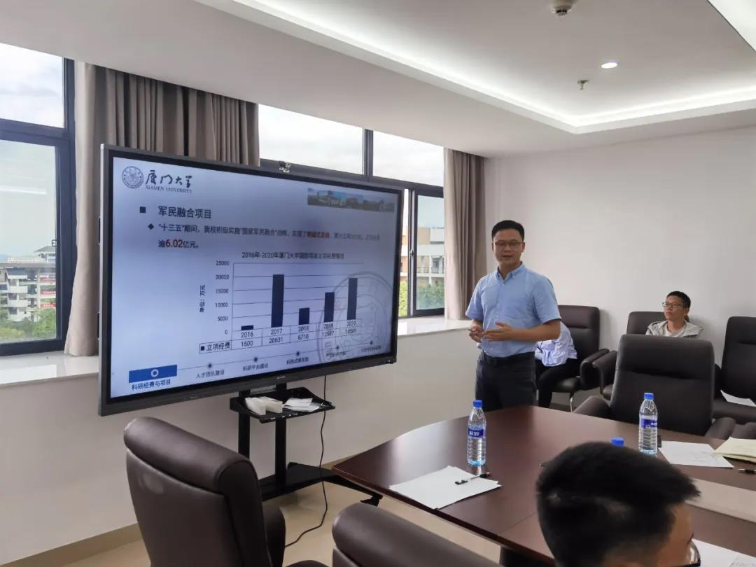 为进一步深化细化厦门大学与龙岩学院研究生联培工作,加快推动两校之间产学研合作,2021年10月19日,我院特别邀请厦门大学研究生院培养与管理办公室副主任邱文华、厦门大学科技处产学研办公室主任蔡启智等两位老师来龙岩学院召开“厦门大学-龙岩学院研究生培养与产学研合作工作交流会”。龙岩学院科研处负责人黄翠琴教授、龙岩学院经济与管理学院书记兼院长蔡立雄教授、龙岩学院研究生办副主任童小娟、龙岩学院物理与机电学院臧克江教授、龙岩学院物理与机电学院院长助理李健博士以及我院院长唐礼智教授、副院长周江聪博士、龙岩市新罗区政府办公室副主任林智雄(厦门大学挂职干部)和我院全体在院员工等参加了本次工作交流会。