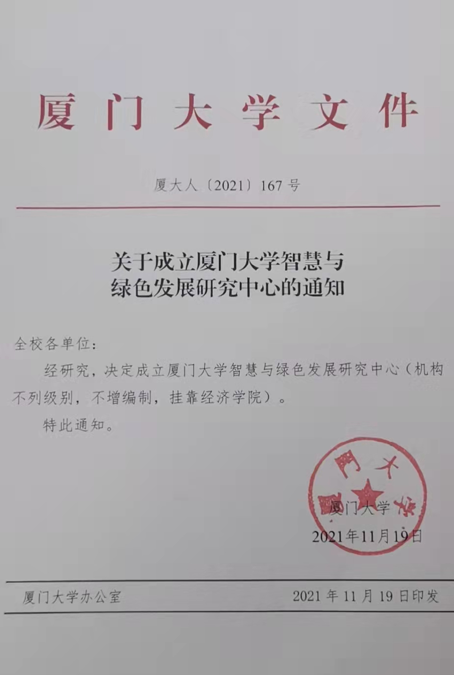 近日,由我院唐礼智教授领衔,在充分整合厦门大学经济学院、信息学院、环境与生态学院以及龙岩学院资源工程学院、数学与信息工程学院和经济与管理学院10多名中青年教授、博士基础上所申报的厦门大学校级平台——厦门大学智慧与绿色发展研究中心正式获批。智慧绿色研究团队自组建运行一年以来,积极投身于人工智能技术与双碳技术、数字经济与绿色经济的交叉融合研究与应用,目前已经在Journal of Environmental Management,Journal of Hazardous Materials 等SCI权威学术期刊上发表多篇学术论文,主持国家重点研发计划项目、国家自然科学基金、国家社会科学基金等多项国家级纵向研究课题,并且在龙岩以及国内其它地区承担多项地方政府和龙头企业委托的横向课题,主办或协办两场数字经济、人工智能与双碳融合发展的全国性会议,正成为国内智慧绿色交叉研究领域发展势头迅速的一支新兴研究力量。