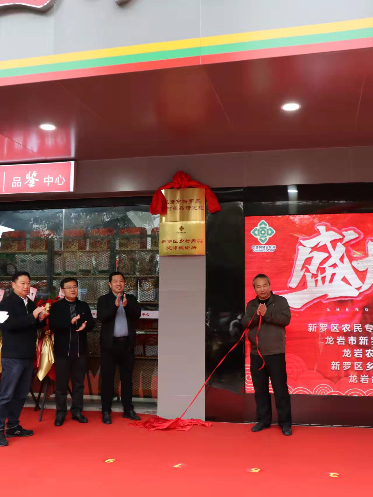 为努力探索巩固脱贫攻坚成果,助力乡村振兴,积极开展消费帮扶活动,2021年12月31日上午,新罗区农民专业合作社产品展销中心开业庆典暨龙岩市新罗区乡村振兴研究院、新罗区乡村振兴龙津微论坛正式挂牌成立。龙岩市供销社副主任蔡仁淼,新罗区人民政府副区长林德文、孔招娘,新罗区政协副主席陈丽萍,龙岩农商银行党委书记、董事长罗建南,区农业农村局、供销社、江山镇负责人等约30余人参加,孔招娘副区长致辞。厦门大学国内合作办公室副主任、龙岩产教融合研究院院长唐礼智教授出席了本次活动。