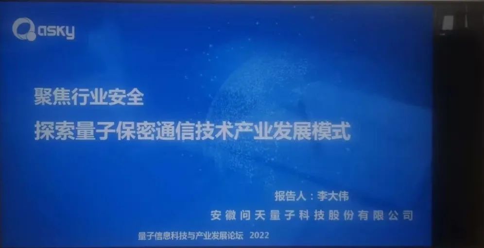 李大伟总裁助理作《聚焦行业安全、探索量子保密通信技术产业发展模式》报告,他详细介绍了安徽问天量子科技股份有限公司在国内能源、金融、国防等行业领域所开展的量子保密通信技术应用场景,并特别介绍了该公司未来将与高校联合开发量子信息课程和建立实验室情况。