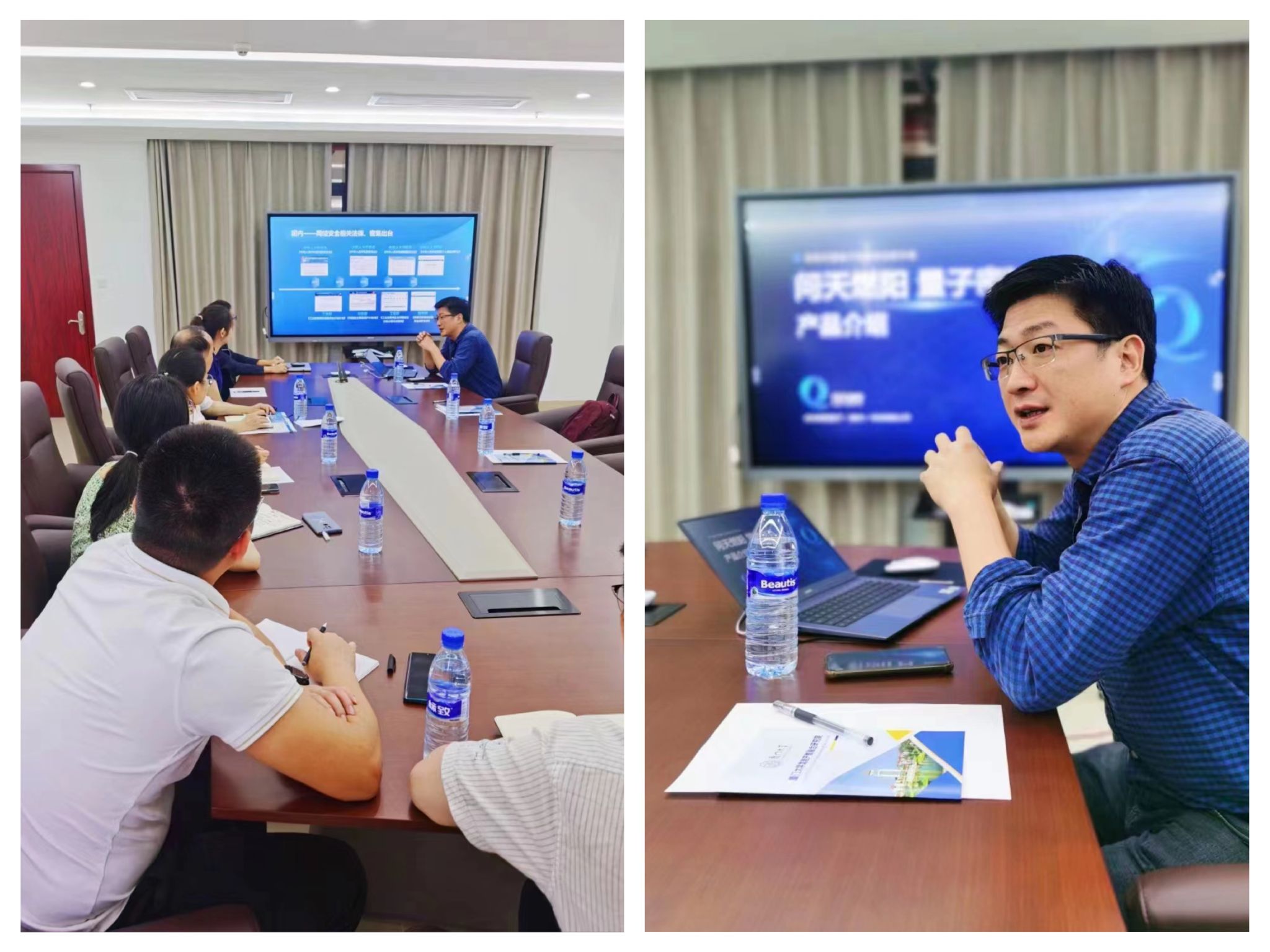 2022年5月13日,问天燃阳量子(福州)科技有限公司总经理魏华明、市场总监卞珺一行应邀来到研究院开展合作交流,我院院长唐礼智教授、院科技项目中心以及龙岩学院龙岩学院物理与机电工程学院陈荣鑫博士等参加了本次交流活动。这是自2022年2月26日我院与问天燃阳量子(福州)科技有限公司成功主办福建省首个量子信息技术会议以来又一次技术交流会。魏华明总经理首先做《量子信息技术应用与发展》的专题讲座,系统地介绍了量子密码通信基本原理、研究进展、产品类型和应用场景,并与现场人员开展了热烈讨论,同时耐心细致地解答所提出的各种问题。