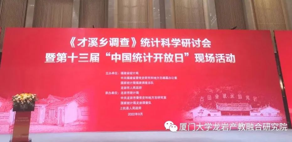 为继承发扬苏区精神、长征精神、老区精神,从党的百年奋斗历程中汲取智慧和力量,以实际行动深化党史学习教育,进一步整理挖掘红色调查统计史,学习传承《才溪乡调查》立场观点方法,以史为鉴,守正创新,推进统计现代化改革,加快构建现代化统计调查体系和统计监督体系,以实际行动迎接党的二十大胜利召开,福建省统计局、中共福建省委党史研究和地方志编纂办公室、龙岩市人民政府于2022年9月14日到16日在上杭县共同举办“《才溪乡调查》统计科学研讨会暨第十三届‘中国统计开放日’现场活动”,来自国家统计局、国防大学、厦门大学、福建省委党史研究和地方志编纂办公室、福建省统计局、福建省文旅厅、国家统计局福建省调查总队以及福建省各市统计局等单位的专家、学者和政府统计人员约50人参加了本次研讨会。