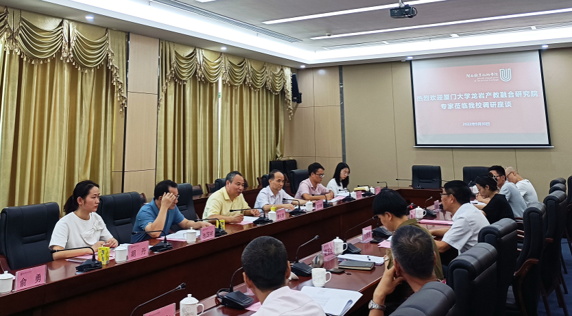 参观结束之后,双方在岩声楼二楼会议室召开座谈会。来自闽西职业技术技术学院智能装备、新材料、数字经济等领域的10多位骨干教授参加了本次会议。会议由闽西职业技术学院对外交流合作处负责人梁玉兰教授主持。座谈会上,吴新业副校长对我院一行来访交流表示欢迎,并介绍了学校的基本情况、办学理念和近年来学院产学研发展取得的成效。唐礼智介绍了研究院的产学研情况,展示了一批助力龙岩经济发展和产业升级的高水平成果,阐释了未来的发展思路及发展的愿景。随后双方以具体的项目合作为主线,说优势、谈需求、摆问题,直入主题,干货满满,寻找到多项合作机会,双方均表示要尽快抓落实促落地,共同助力闽西革命老区高质量发展。