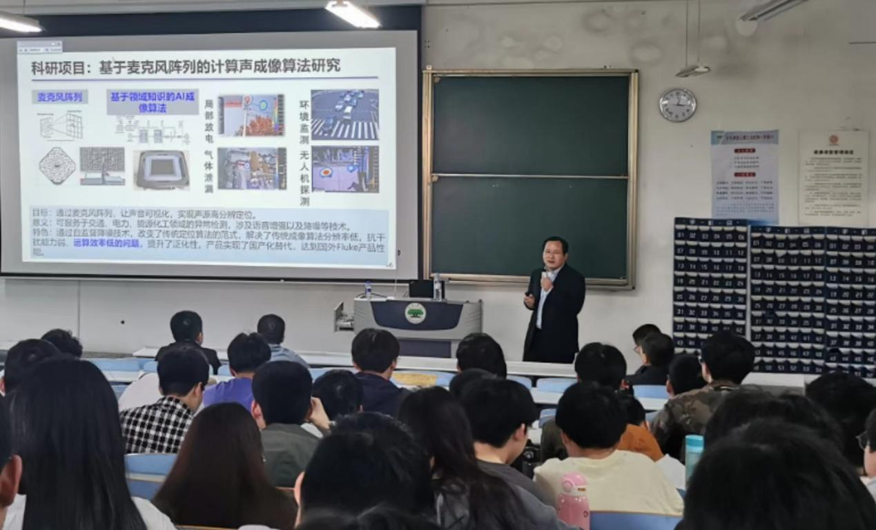 12月14日,我院与龙岩学院联合举办的“龙岩厦大产教融合研究院奇迈学术讲座”第一讲在龙岩学院文虎楼307教室举行。特邀厦门大学丁兴号教授作题为“面向行业应用的机器学习与智能信号处理”学术报告。本次报告由龙岩学院物理与机电学院副院长陈阳主持,龙岩学院物理与机电学院120余名师生聆听了报告。