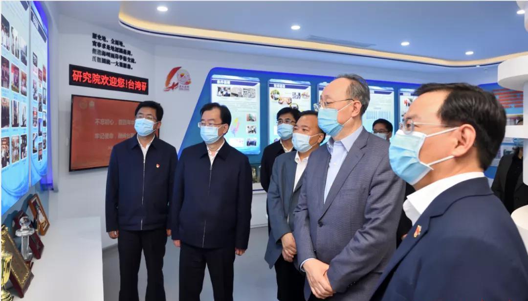 尹力一行来到位于思明校区的厦大台湾研究院,听取该院在人才培养、智库建设、学术活动、交流合作等方面情况,并察看了文献信息中心。尹力要求,要进一步落实习近平总书记重要指示精神,坚持正确政治方向,注重以问题为导向加强研究,积极开展国际交流和两岸学术交流合作,为促进祖国统一大业贡献智慧和力量。