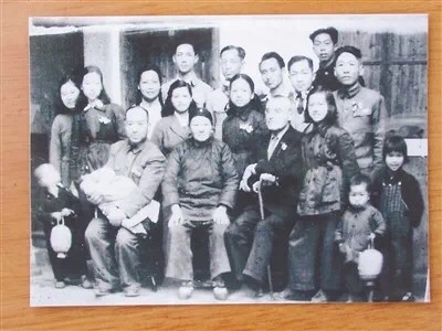 (1951年冬,教授们和张朝海全家合影。前排左一汪德耀主任,左三沙彭教授,后排左二赵修谦教授,左三周南生教授,左四郑重主任,左五李博达教授。)