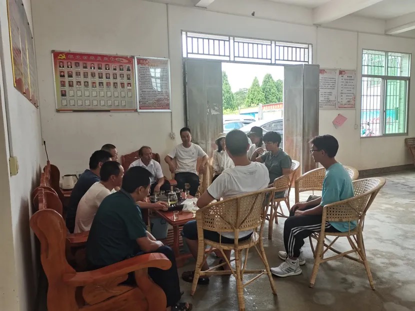 通过走访座谈,社会实践队了解了载文村的村情,该村的特色种植业发展以及未来发展规划,并且听取了村支书如何通过党建引领,推动美丽乡村文明创建,发展村级集体经济等工作介绍。实践队了解到在村干部们带领下,近年来载文村发生了翻天覆地的变化,特别是环境整治工作尤为称颂,村民们对乡村振兴的支持力度加大,呈现群策群力共同为载文村谋发展的良好风貌。