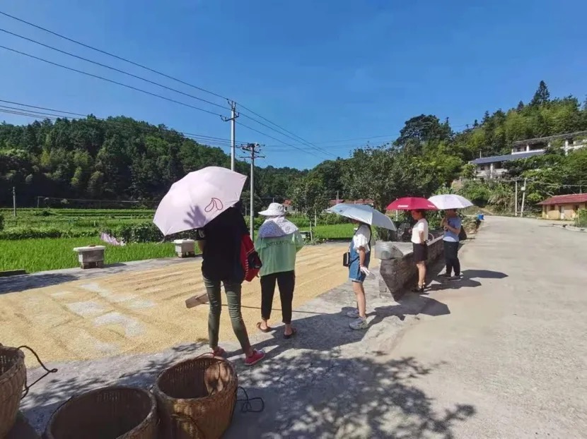 图2-实践队与正在晒稻谷的阿姨进行交流