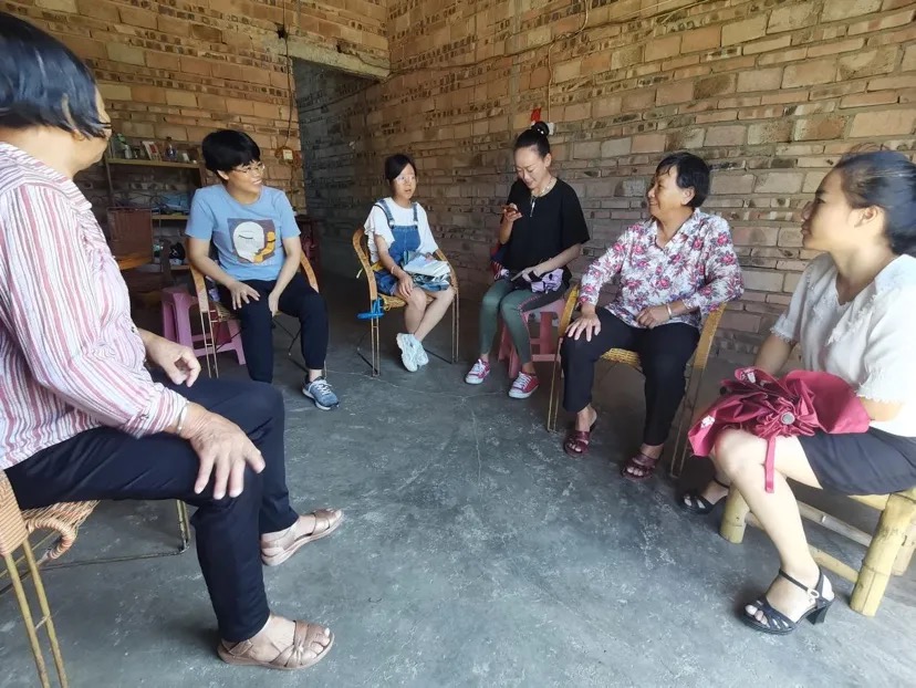 图1-实践队在王女士的带领下与两位奶奶进行交流