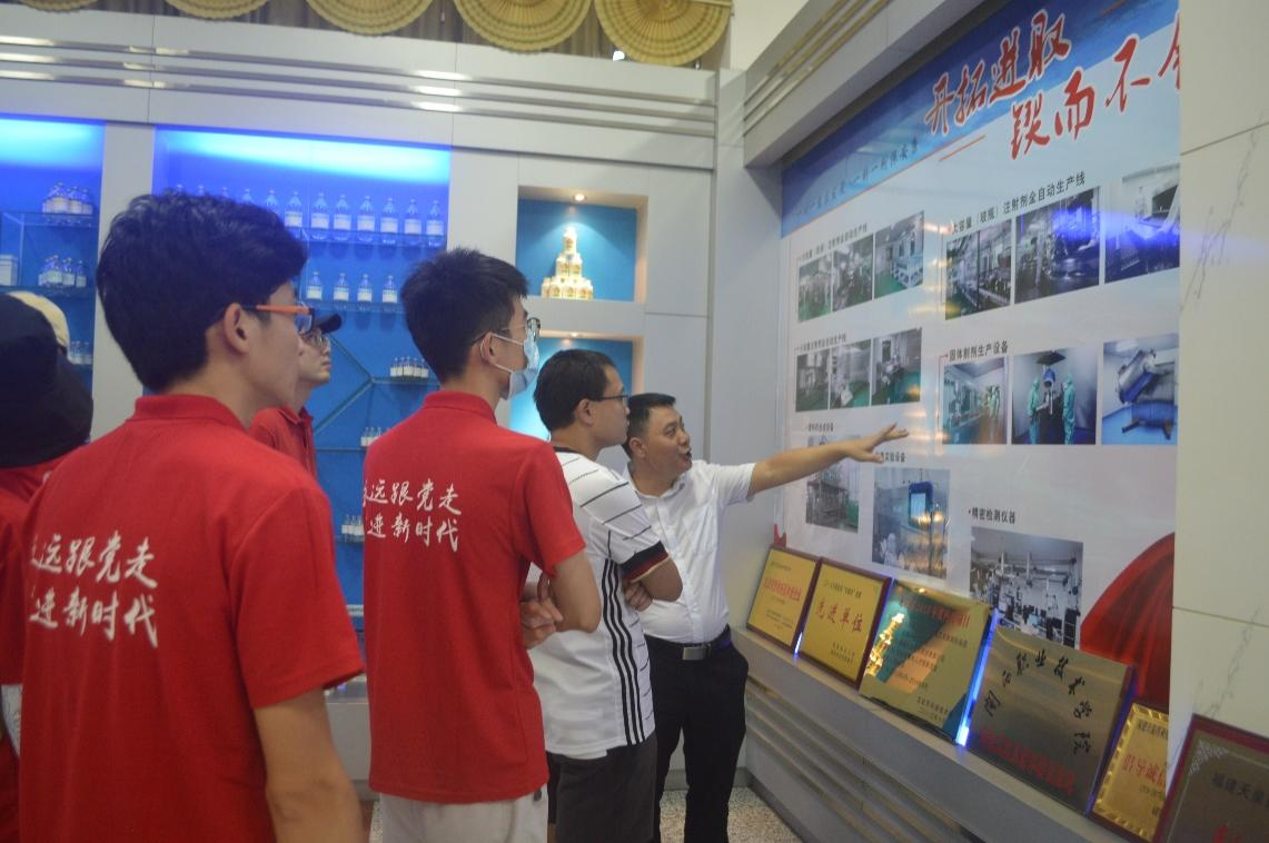 7月15日下午,实践队首先来到天泉药业股份有限公司进行考察。队员们认真学习了生产线覆盖的不同形式消毒杀菌过程,例如纯水汽化高温消杀,车间臭氧消毒等方法的运行原理、消杀成本、后期维护,消杀效果及行业标准等。同时,也了解到对环境空间的消杀是清洁生产的重要步骤,消杀方式应用需结合消杀效率及成本等因素进行考虑。实践队还运用自身的专业所长,主动向公司负责人介绍了紫外线消杀的有关内容,双方就消杀方式进行了热烈的讨论。