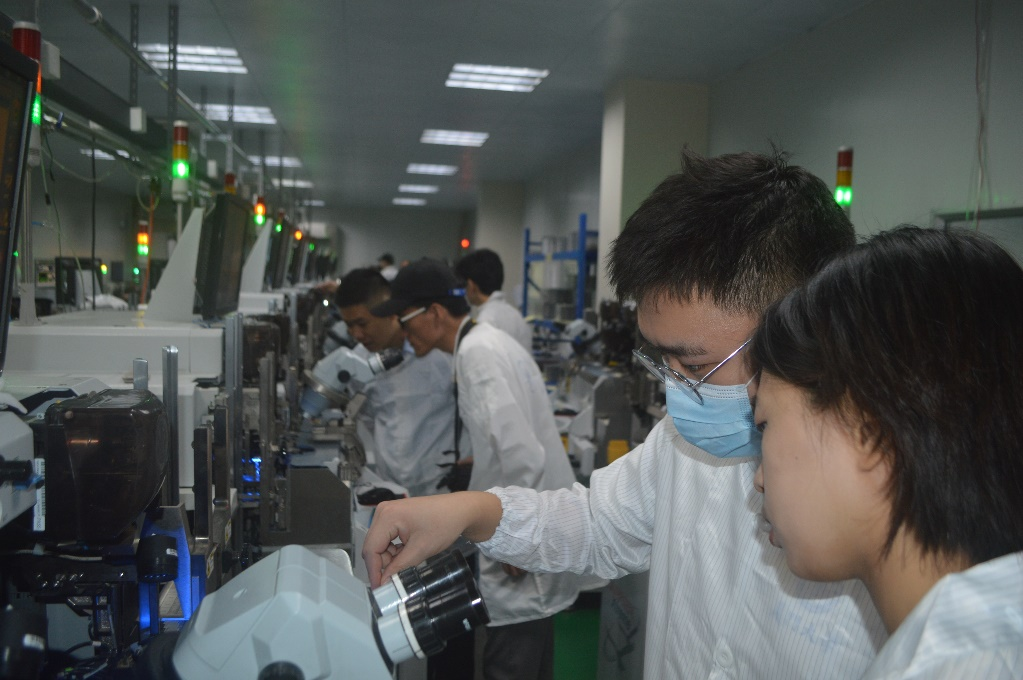 7月16日上午,实践队一行人走访龙岩德煜照明有限公司,深入先进的LED封装自动化生产线。实践队与厂方就芯片的封装、布线工艺与检测展开热烈讨论,并了解到目前芯片封装上的难点,表达了未来共同推动双方合作研发的强烈意愿。
